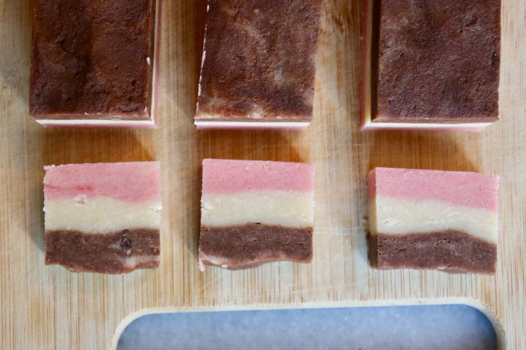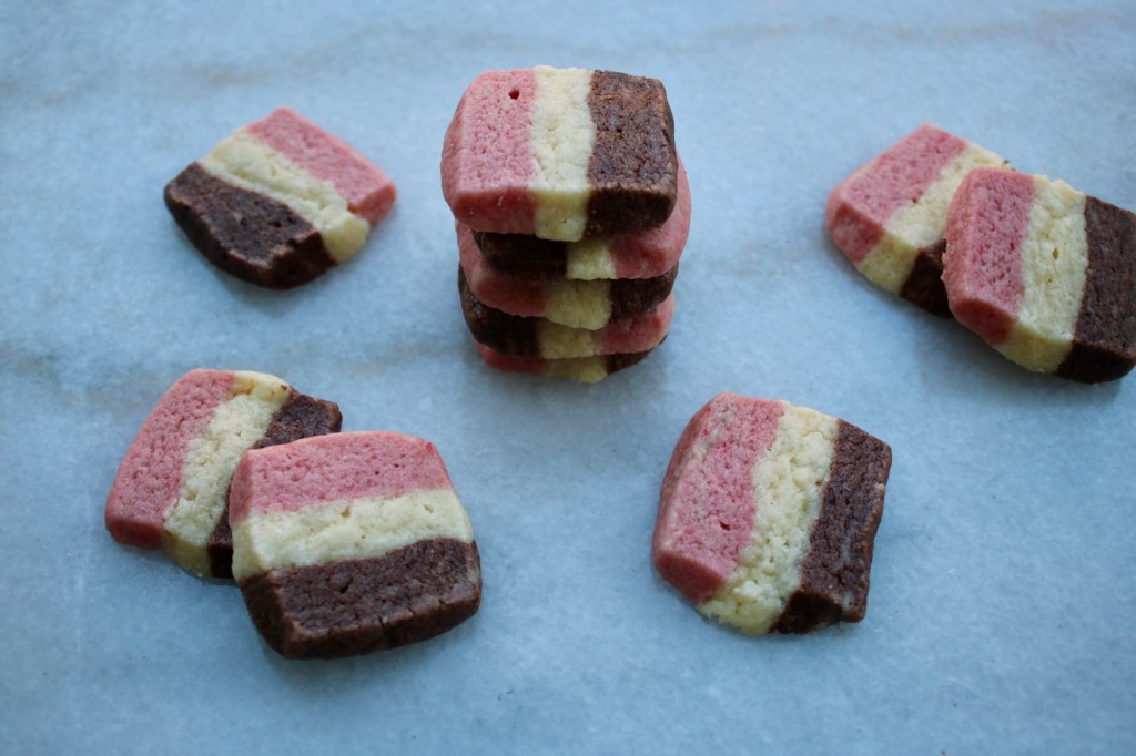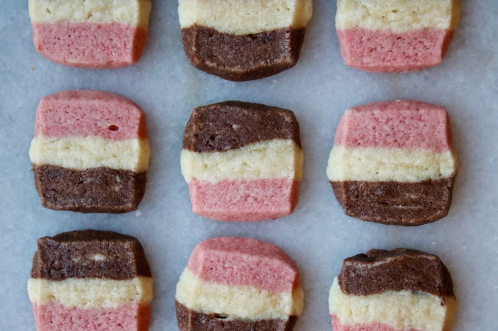 Neapolitan recipe from: https://sallysbakingaddiction.com/neapolitan-cookies/