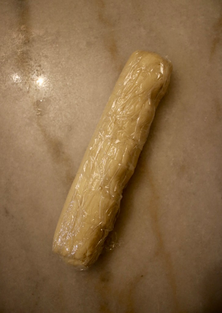 One last nighttime task before bed: whipping up some marzipan. I went with an egg white free version, just ground almonds, powdered sugar and a little water to bind it all together.