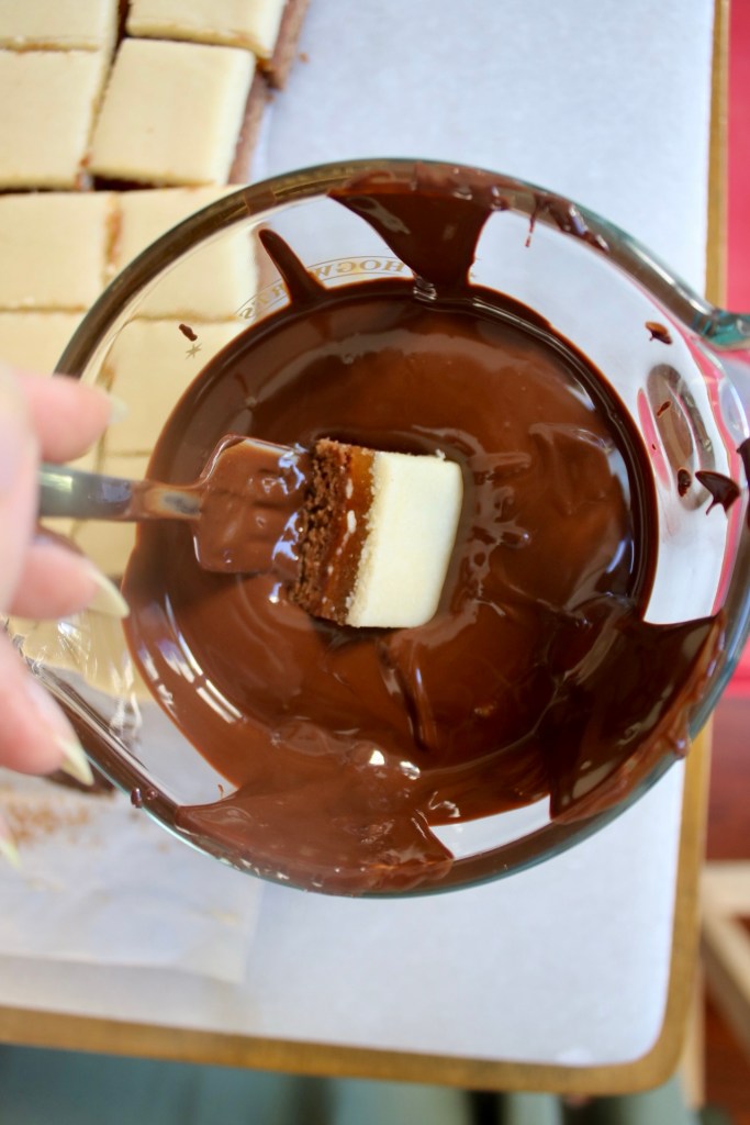 Proving to myself that I’m learning from my mistakes, I added a splash of canola oil to the melting chocolate to help the dipping process.