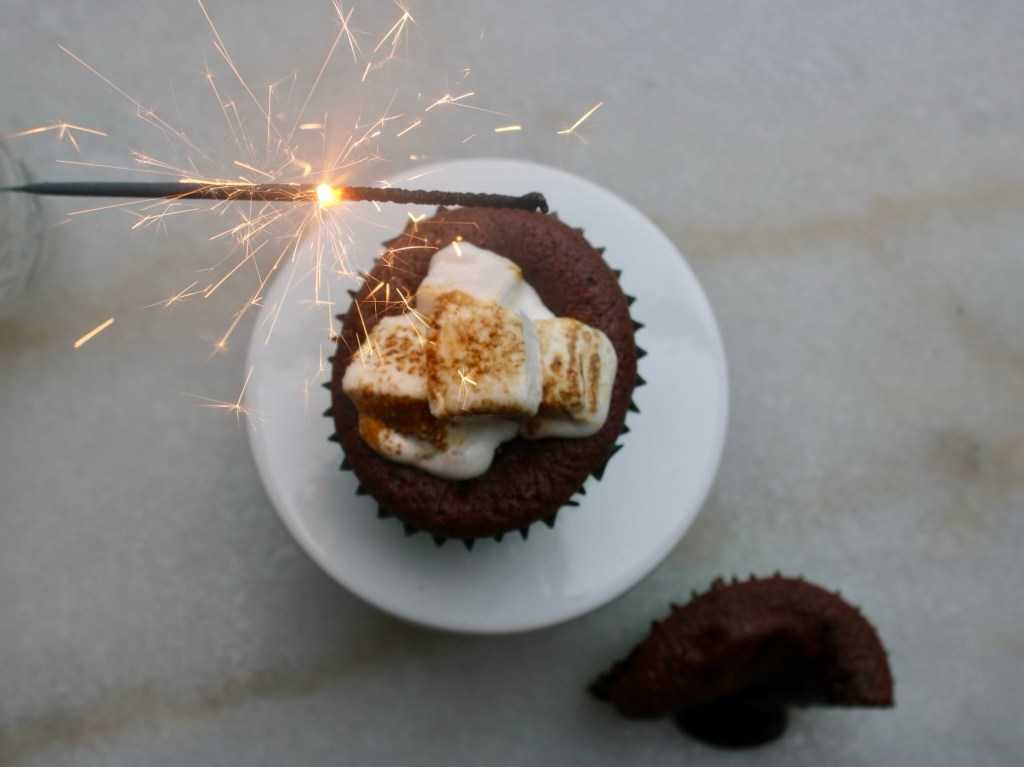 Happy New Year! Ringing in 2025 in my favorite way: with sparklers and chocolate! # 378: Hot Chocolate Cupcakes
