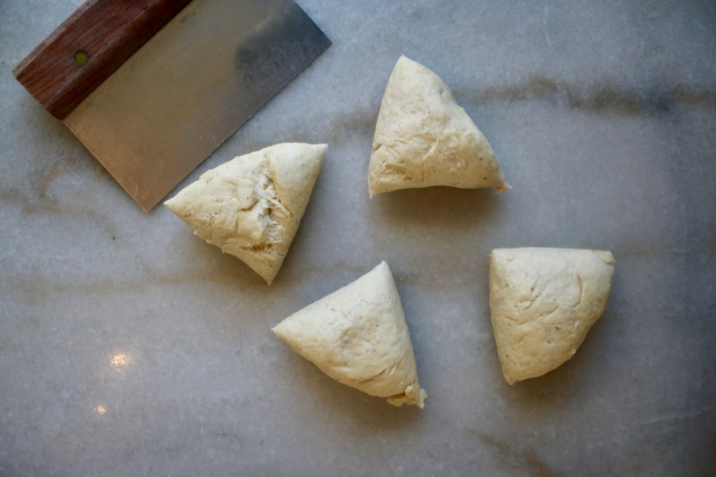 Cutting the recipe in sevenths (!) made the perfect amount for four buns. Shouts to my digital scale for making my tiny bake dreams come true.