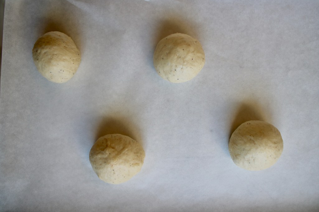 I want to go back in time and teach 2017 Nicky how to turn a random shaped chunk of dough into a happy round bun: tuck any corners in by folding them underneath and then use the friction of a non-floured table or board to convince the corners to stay put. The motion looks like I’m gently scrubbing the board in circles to clean it, but with a ball of dough in my hand.