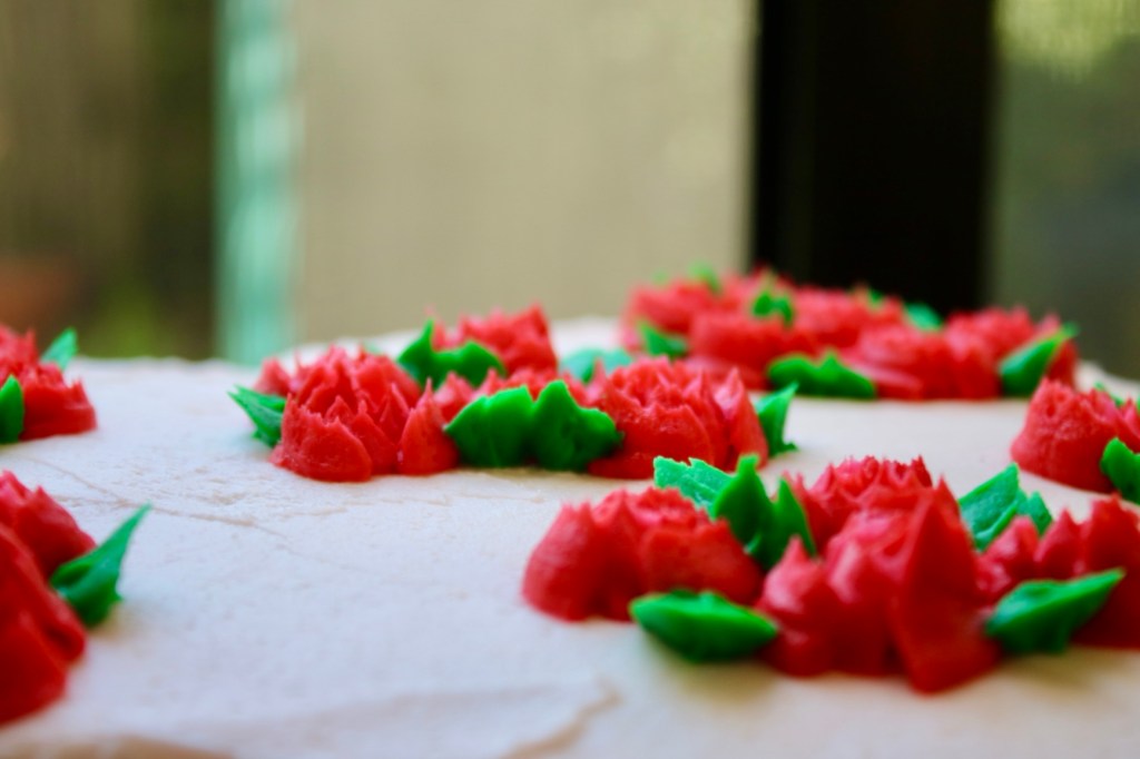 I only used one rose-ish tip this time, but explored a bit more with my botanical cupcakes a few years ago. Maybe I’ll do a summer flower cake this year and try to use every single one! It’ll definitely take every single ramekin and small bowl in my house to make all the colors but it’ll be worth it. (I can already feel Nate Dish Washer Extraordinaire cringing.)