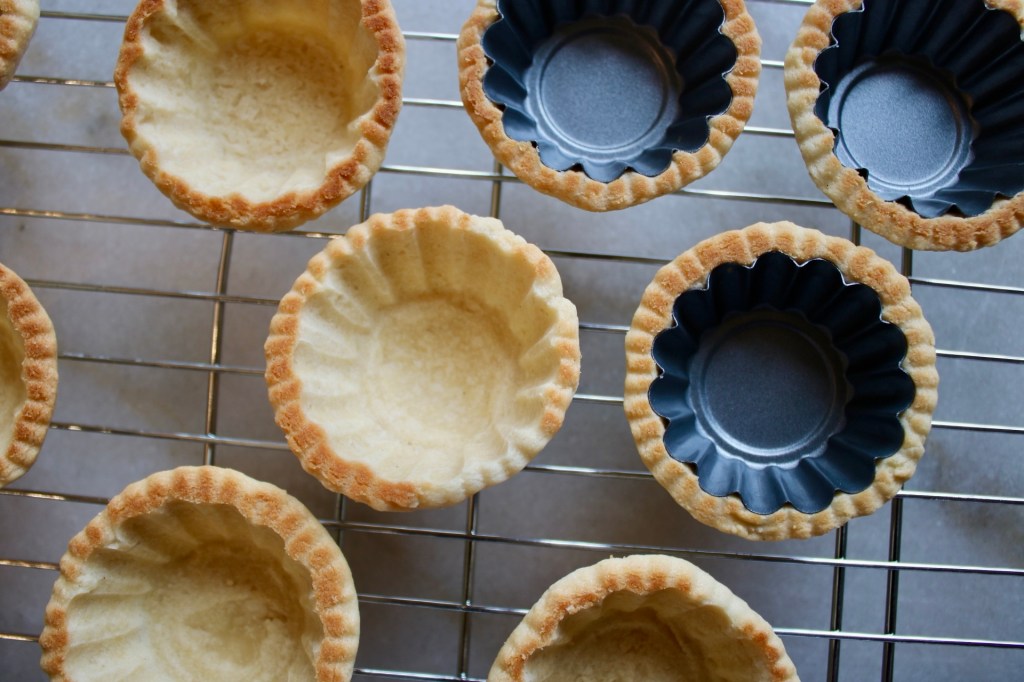 Decided to try baking them on the outside of the tartlet shells for a larger capacity and a better ratio of filling to shell.