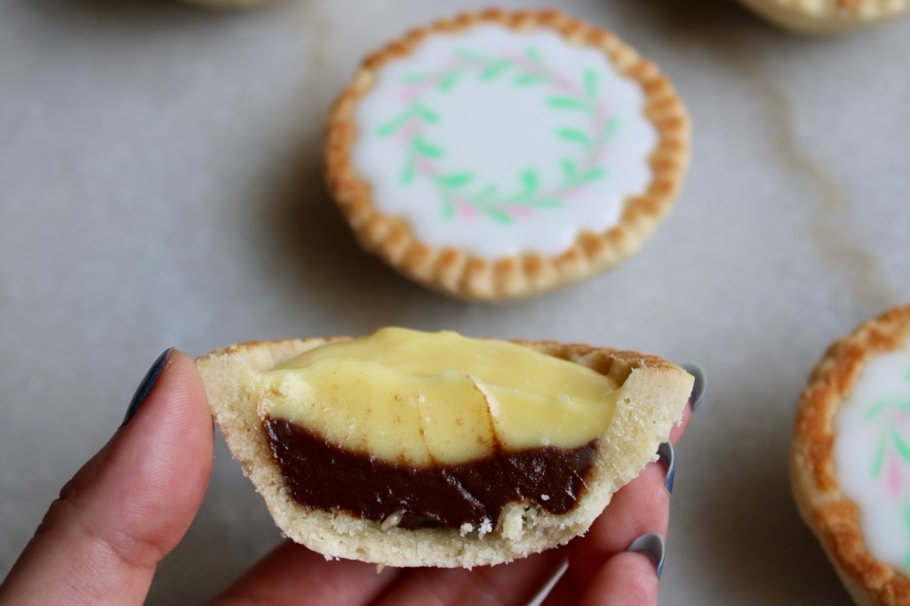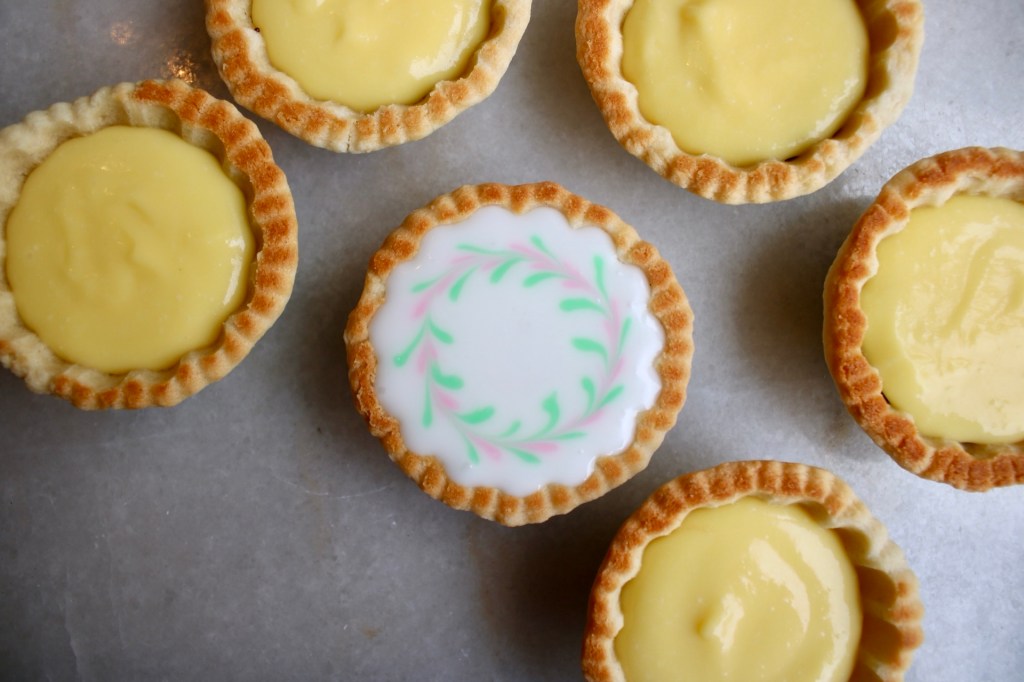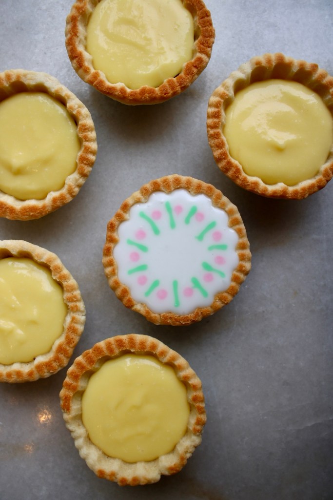 These cuties feature leftover pâte sucrée, leftover passionfruit curd, a quick chocolate ganache and sugar icing. Don’t mind me, just making room in the freezer for postpartum meals.