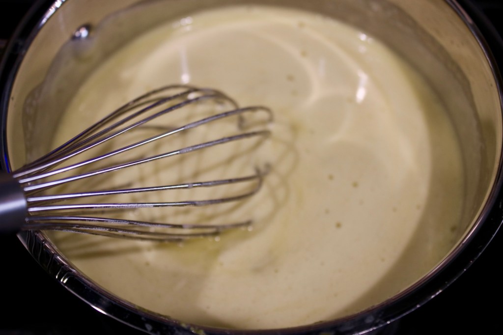 It takes a tiny bit longer to thicken than regular pastry cream, but when it decides to shift, it goes from liquid to gloopy mess in seconds. Sneaky sneaky.