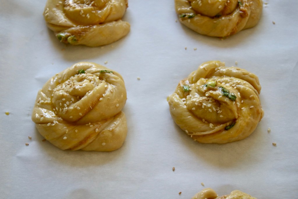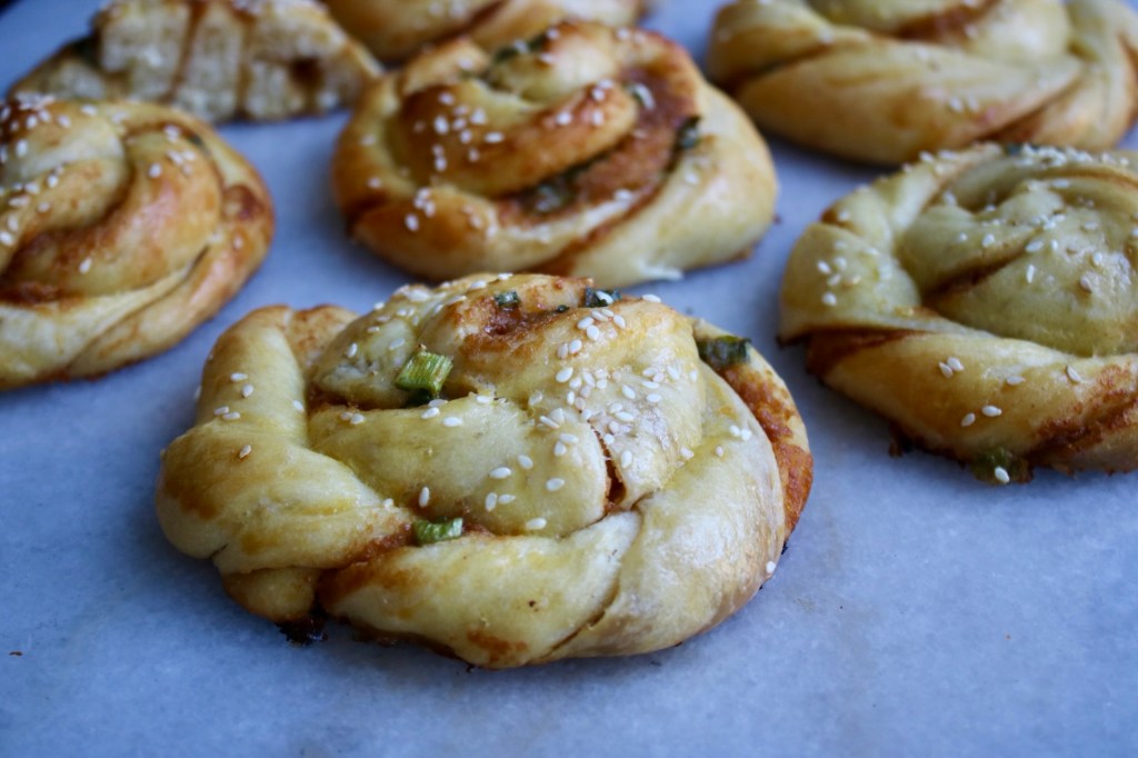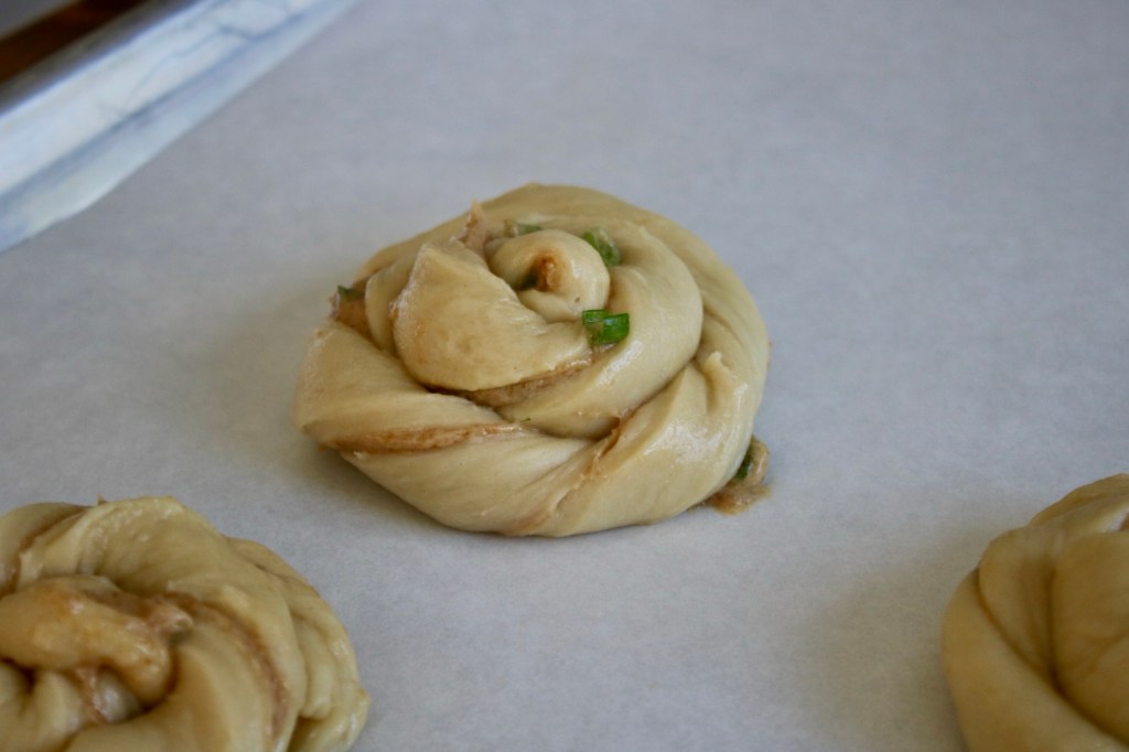 Miso sesame compound butter and scallion confetti snuggled into a fluffy bun. # 401: Miso Scallion Swirl Buns