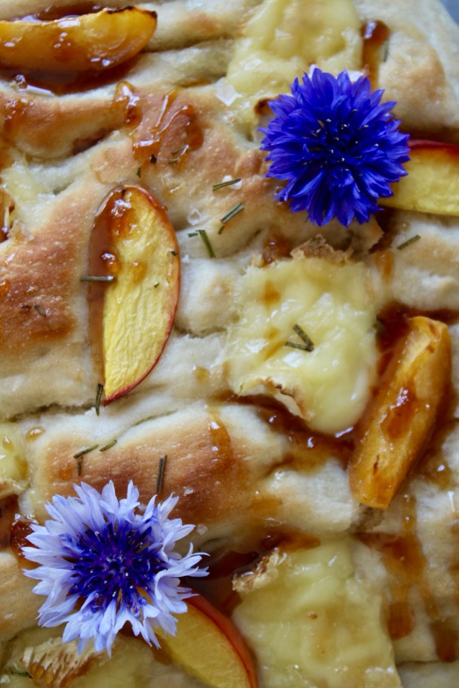 Straddling the savory and sweet line with this cheesy loaf studded with stone fruit and drizzled with hot honey. # 407: Apricot Brie Focaccia
