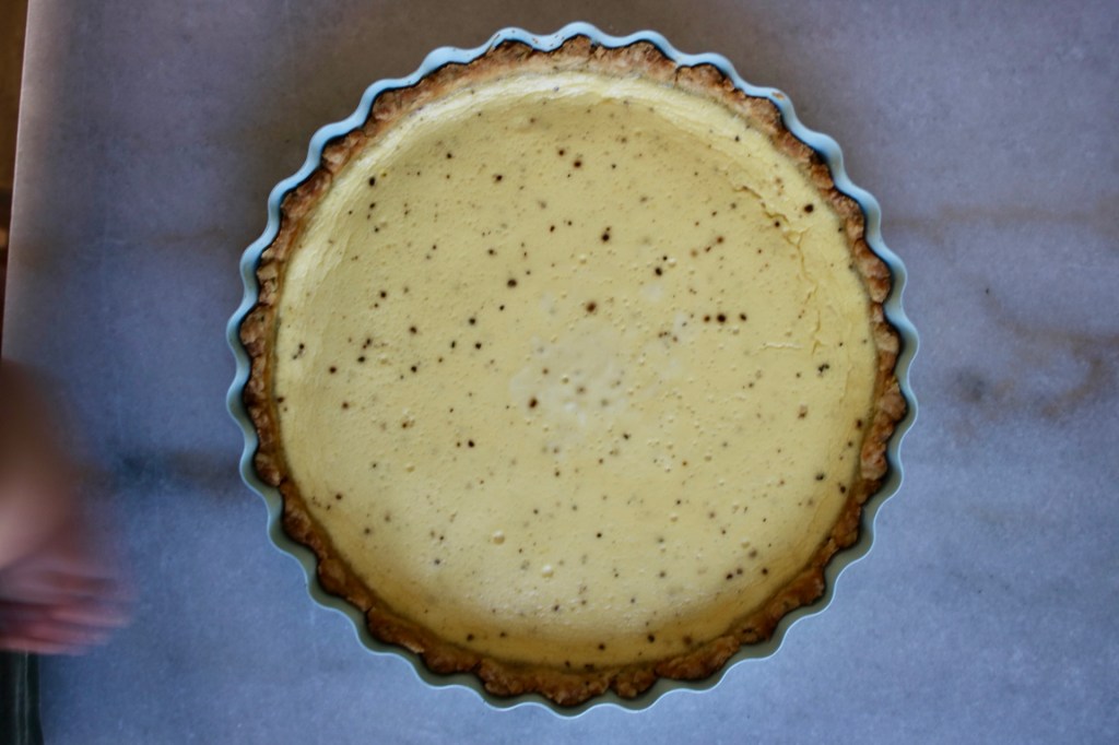 Using cold butter in any sort of pie or tart crust feels like baking law, but this one called for melted butter. 🤯 I wonder if there’s any benefit to melted butter besides the ease of mixing it in? Working with cold butter helps get that yummy flaky texture in pie crust, as the water trapped in the solid butter evaporates in the oven leaving little pockets in the dough. So hypothetically, using melted butter will result in a more compact texture.