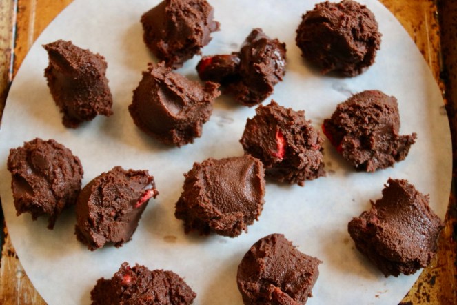 Xiao long bao, or soup dumplings, have always been a bit of a magical mystery to me. How do they get the broth into the wrapper? For the dessert version at least, the answer is frozen ganache. Spreadable at room temperature and liquid when warm, freezing ganache in little teaspoon-sized scoops is the equivalent of stopping time so you can wrap them up in their little dumpling jackets with minimal mess.