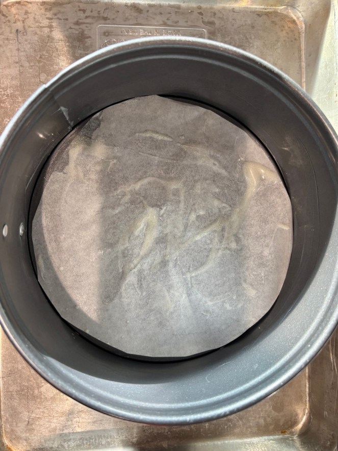 Using a springform pan with a liquid batter is always a gamble, but I took out some sheet pan insurance.
