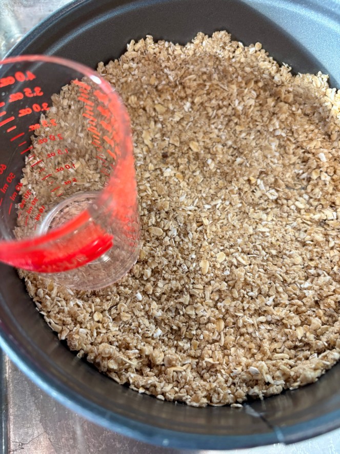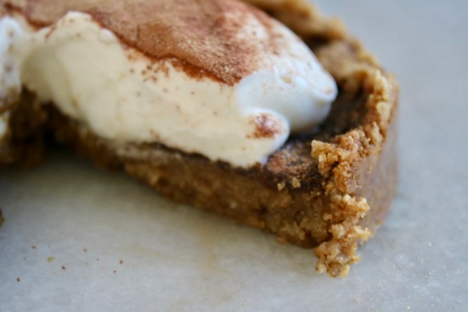 The crust ingredients implied crunchy oatmeal cookie, but in the end the oats soaked up too much of the liquid from the custard and took a turn towards oatmeal. Womp.