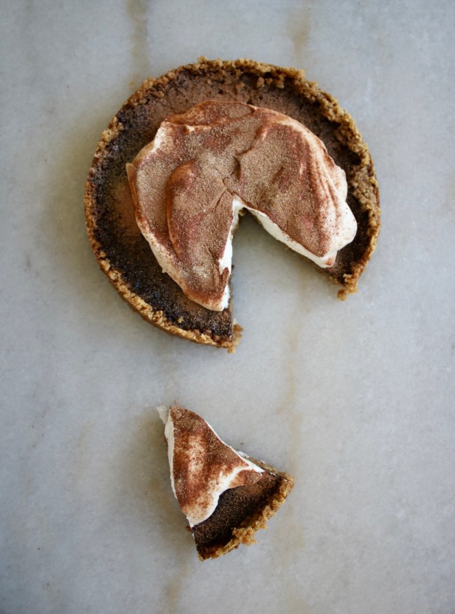 Instead of cooking it on the stove like a pastry cream, the ingredients are mixed together cold and baked in the oven. If I was to make it again, I’d blind bake the crust and just make a coffee pastry cream as the filling.