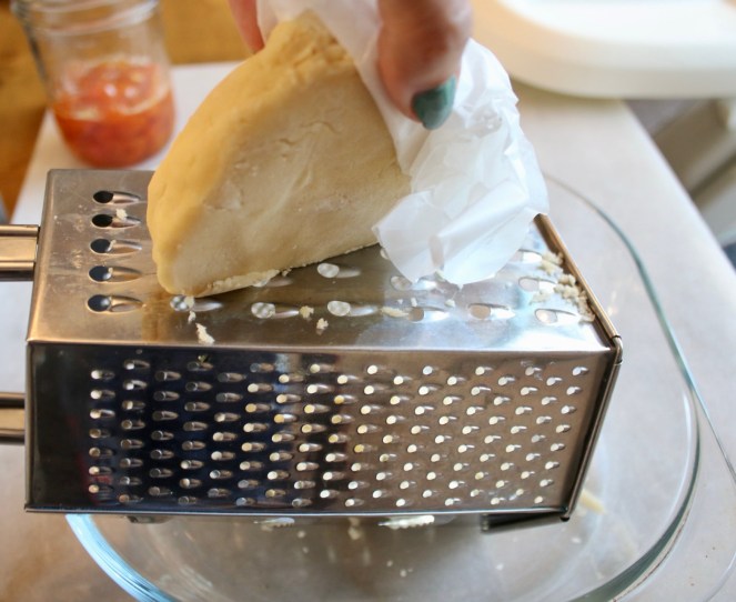 Make sure it’s fully frozen before grating to avoid butter smearing everywhere!