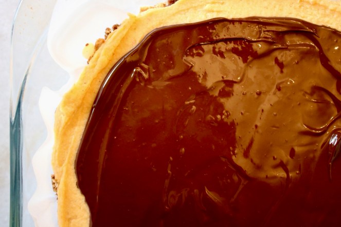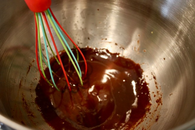 The chocolate glue for the base is like an enriched sabayon. In addition to the sugar and egg, there’s butter and chocolate making things interesting.