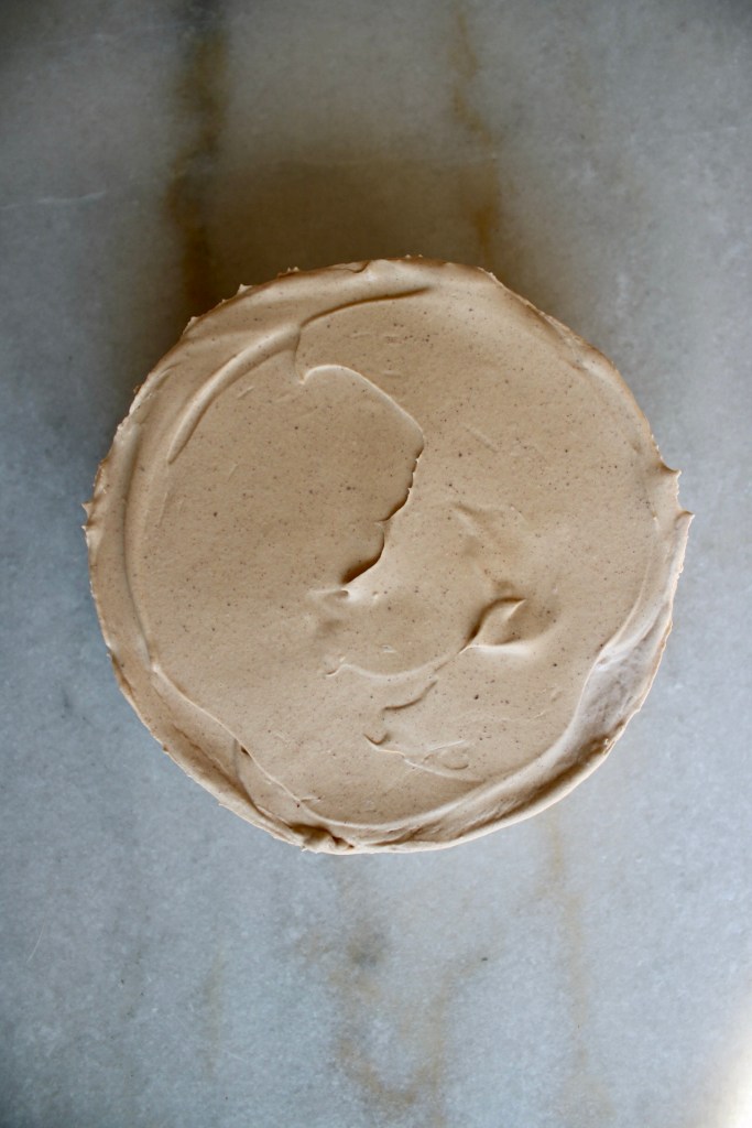 The baking math could have gone crazy here, but I kept with the lazy vibe of this cake and just eyeballed how much filling to use in each layer. It turns out that one batch of the (unrelated) cookie recipe was just the right amount for one batch of filling!