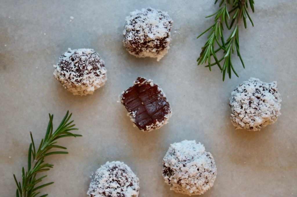 Not a huge fudge and truffle girl, despite being a chocolate fiend. It’s essentially a bite of straight ganache. What if you plopped one on top of a slice of shortbread or squished it between two crisp sablé cookies? More carbs and textural contrast please.