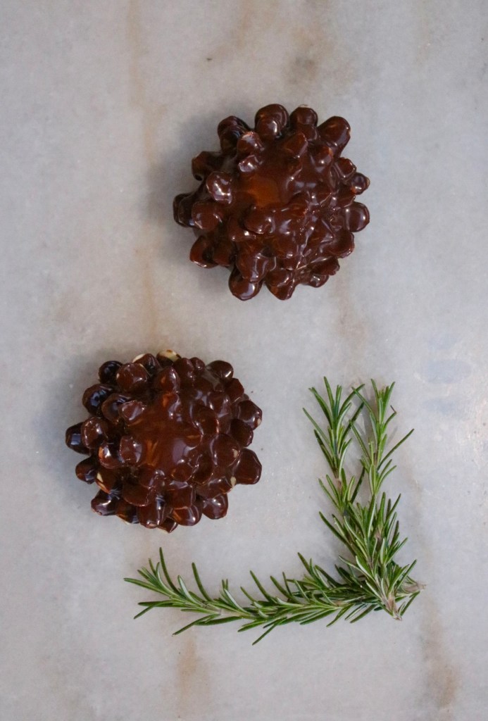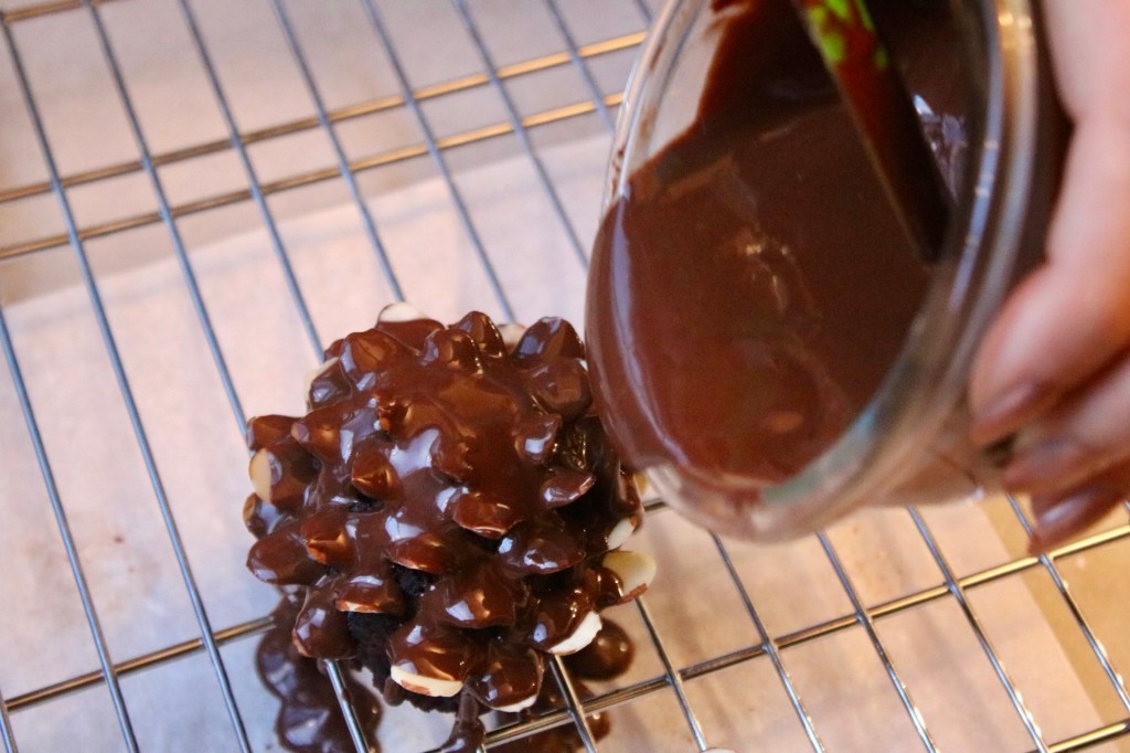 If you’re willing to wait, you can pop them in the fridge and then add more chocolate coating to the undersides of the almonds using a little baking brush (or gravity). I’m sadly not that patient so left them with an artsy drip design.