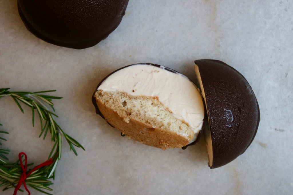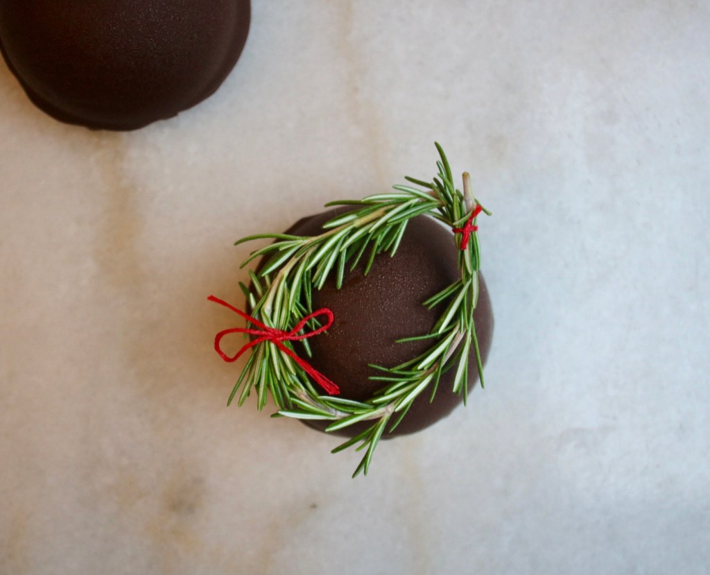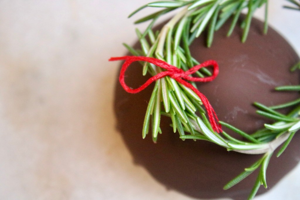 I had a vision of making a bunch of tiny rosemary wreaths to put on everyone’s gifts this year, but they’re surprisingly hard to make. The rosemary stems don’t want to bend into pretty circles, they prefer oblong ovals and it seemed too much effort to convince them otherwise. I settled for making one and plopping it on the bombes as festive decor.