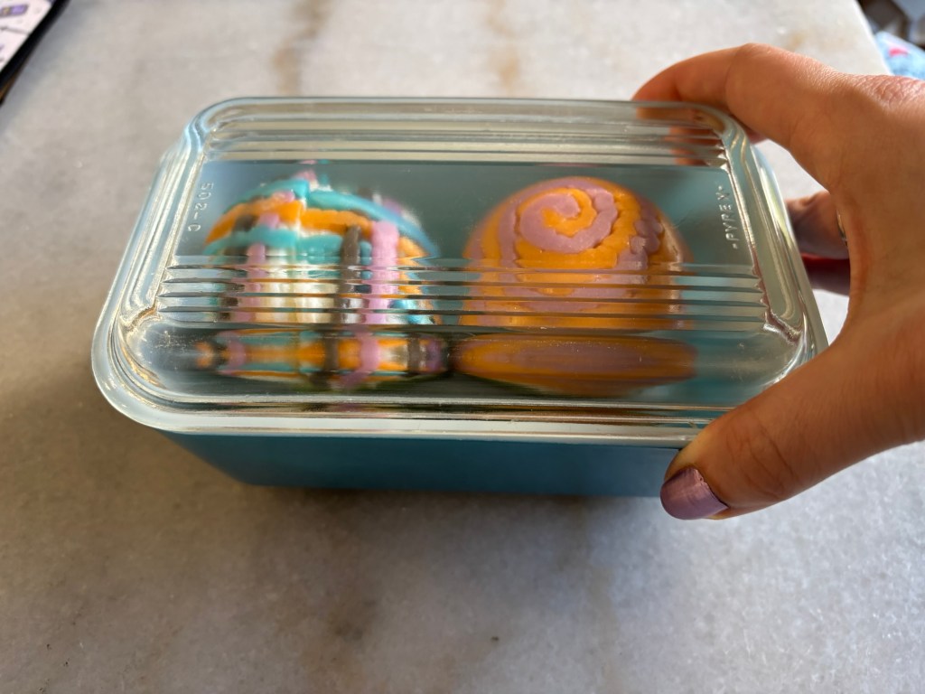 All hail the cutest blue fridgie ever! It fit two buttercream mountains beautifully without smooshing down the tops. Ten outta ten.