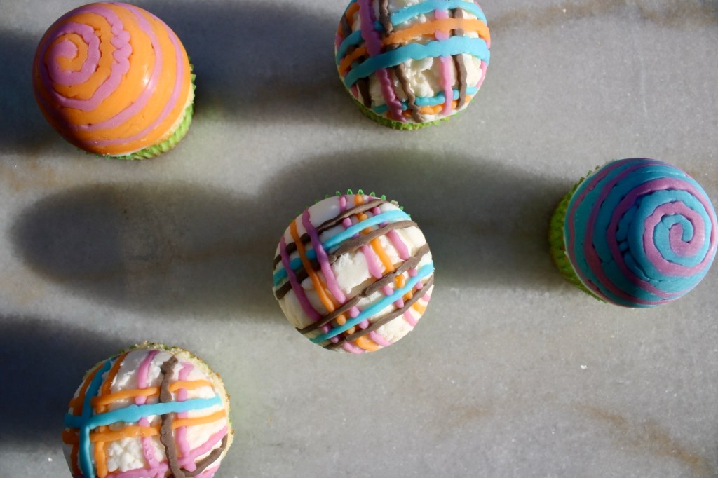 Feeling a little Dr. Seuss with all the colors and swirls on these buttercream mountains. Also, someone please tell me why plaid is so hard to recreate? It took three tries to come up with a pattern that looked at least somewhat like a classic overlapping plaid. Whew!