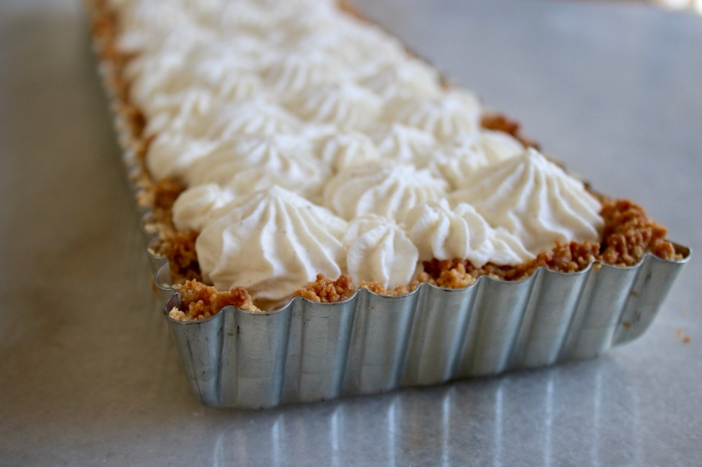 The nerves of taking a cookie crumble crust out of its safe cocoon. Will it have baked long enough to hold its shape?