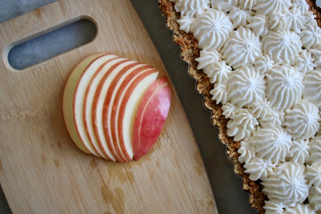 If I was going to serve the tart later in the day, I’d soak the apple slices in lemon juice and water to pause oxidation. But since I’m an immediate-gratification gremlin, they didn’t have time to brown before they got munched.