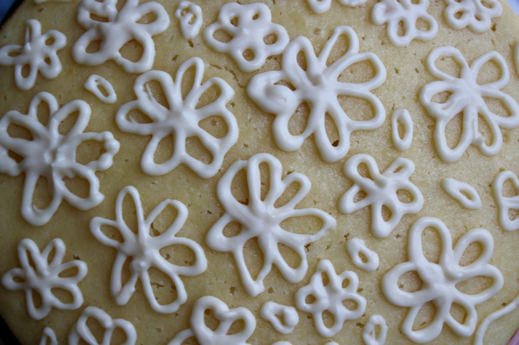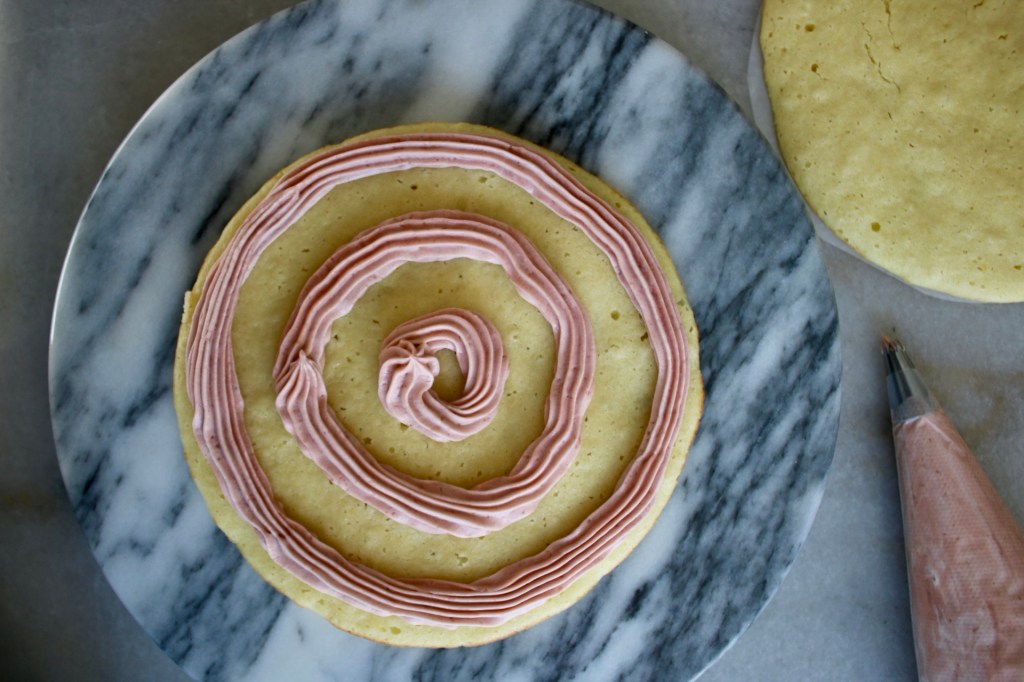 When one cake can’t hold itself together and gives in to gravity, it’s a bummer. But when the second time I make it the SAME thing happens, it’s time to admit I’m picking structurally unstable fillings… Luckily I managed to get a few pictures of the piping before it dove like a lemming onto the floor.