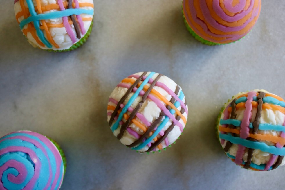 Fluffy lemon cupcakes in their favorite plaid buttercream cardigan. 435: Lemon Plaid Cupcakes