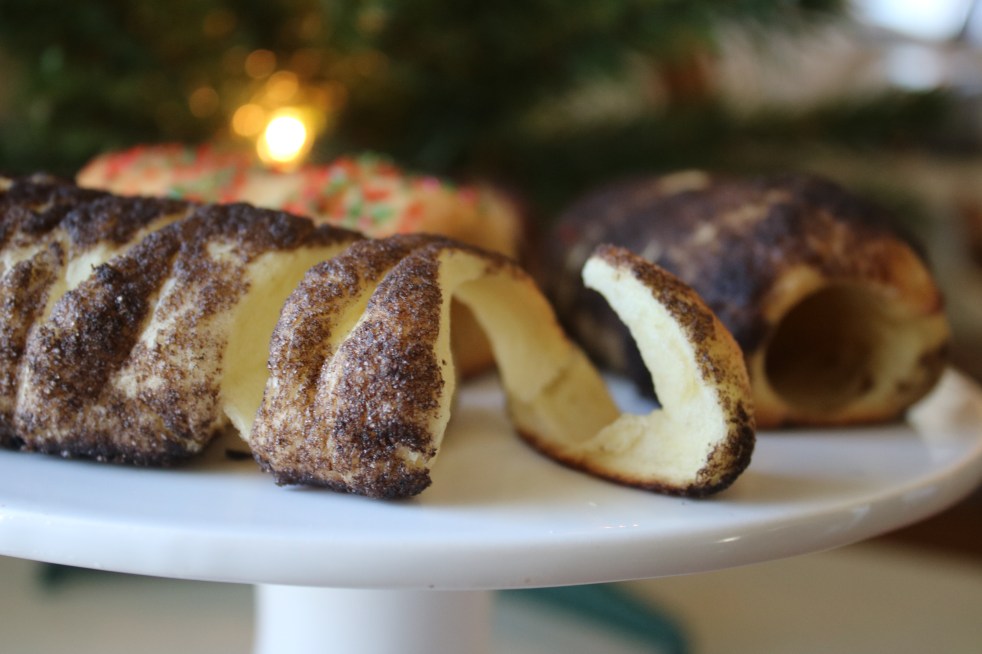Brrr, this weather calls for a big mug of tea and some spiral doughnuts dusted with cocoa, cinnamon and sprinkles. # 102: Hungarian Chimney Cakes