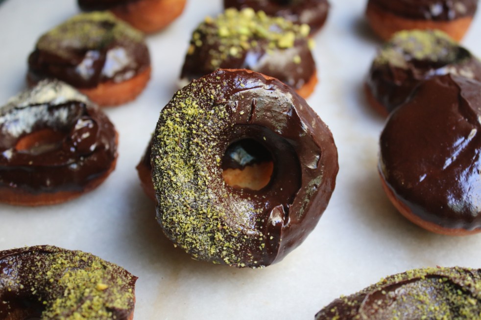 Does a raised doughnut count as bread? Discuss. # 157: Chocolate Pistachio Doughnuts