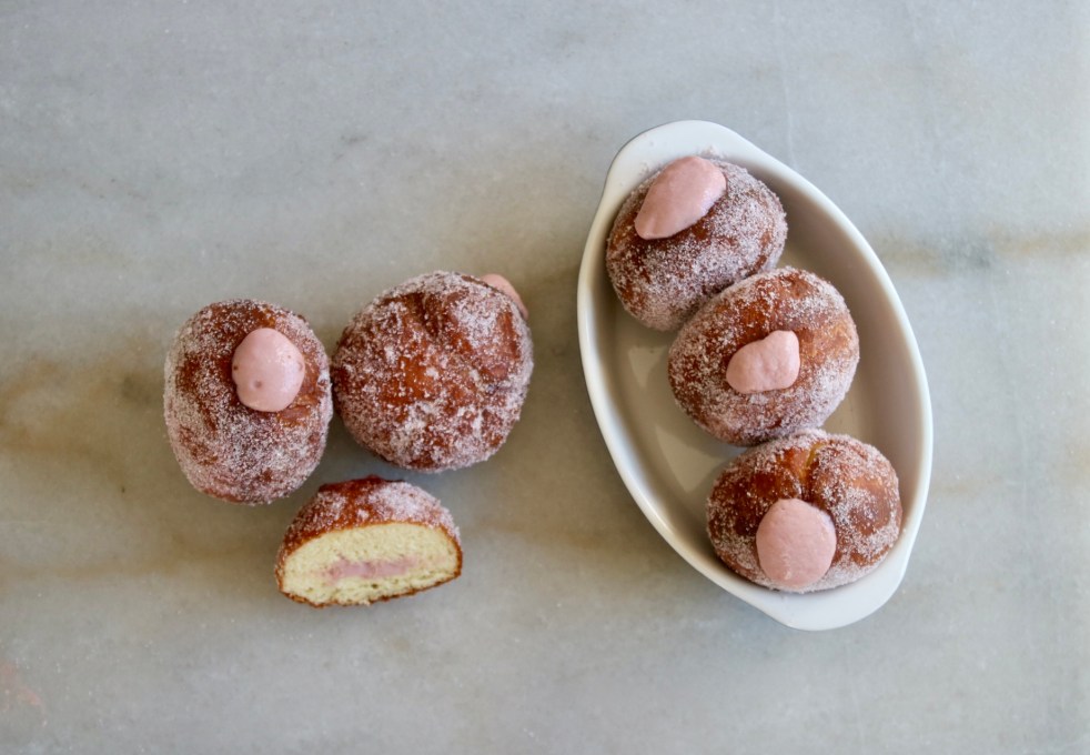 Sparkly sugar pillows filled guava pastry cream. # 314: Guava Cream Doughnuts