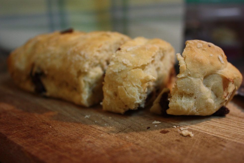 I am a firm believer in the philosophy that adding chocolate improves anything and everything. Obviously, I had to try this recipe for baguettes with chocolate! Week 12: Chocolate chip baguettes.