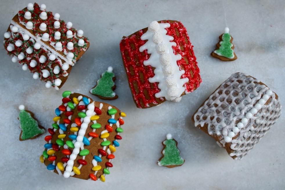 Welcoming December by blasting Christmas music and decorating a neighborhood of mini cookie houses. # 279: Mini Gingerbread Houses